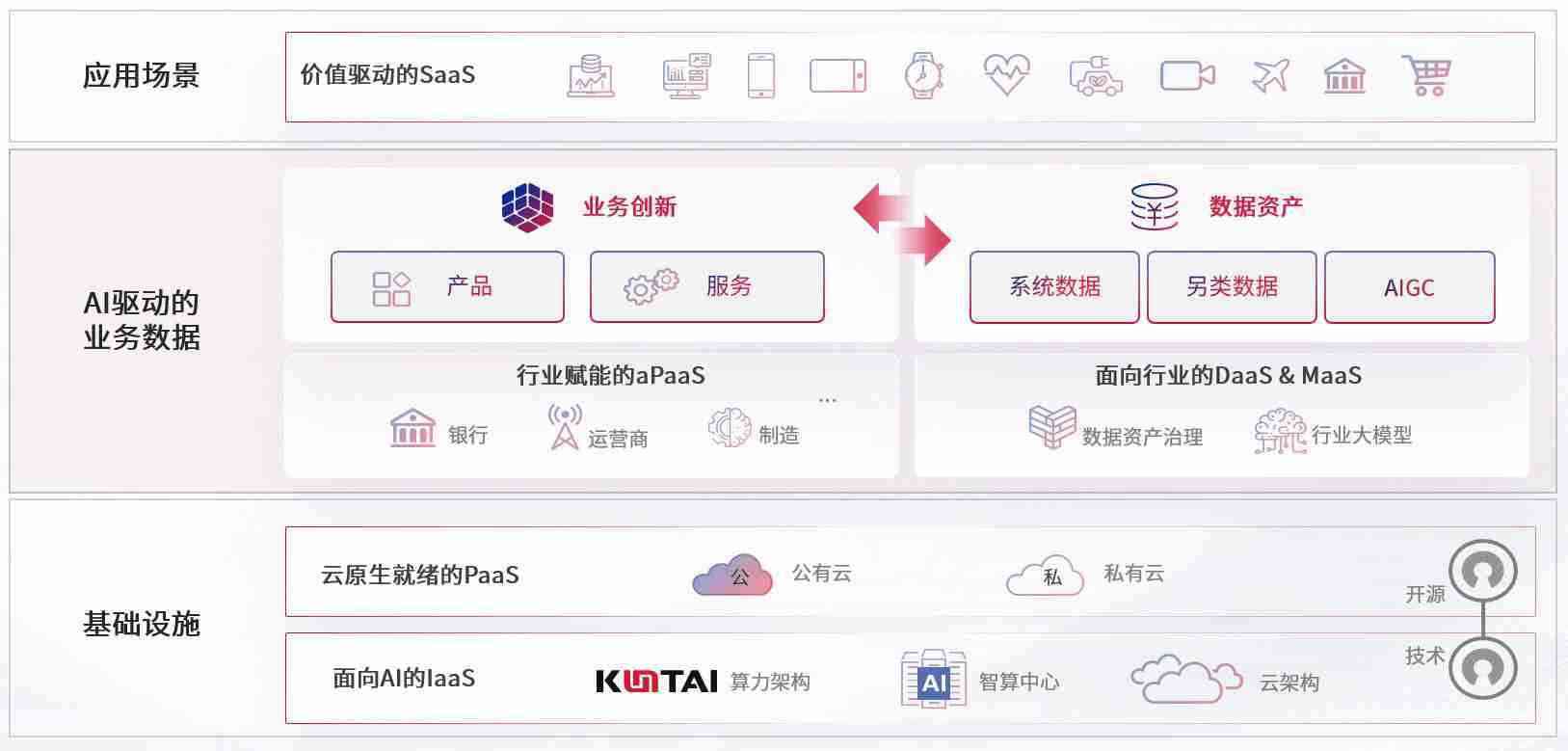 数字时代,,,,围绕企业数字化转型的关键要素,,EBPAY钱包官网数码开创性的提出数云融合战略和技术体系框架,,,着力在云原生、、、、数字原生、、、AI原生和信创产业上架构产品和服务能力,,,,为处在不同数字化转型阶段的快消零售、、汽车、、金融、、、医疗、、、、政企、、教育、、、运营商等行业客户提供泛在的敏捷IT能力和融合的数据驱动能力,,构建跨界融合创新的数字业务场景和新业务模式,,,助力企业级客户建立面向未来的核心能力和竞争优势,,,,全面推动社会的数字化、、、、智能化转型升级。。。
